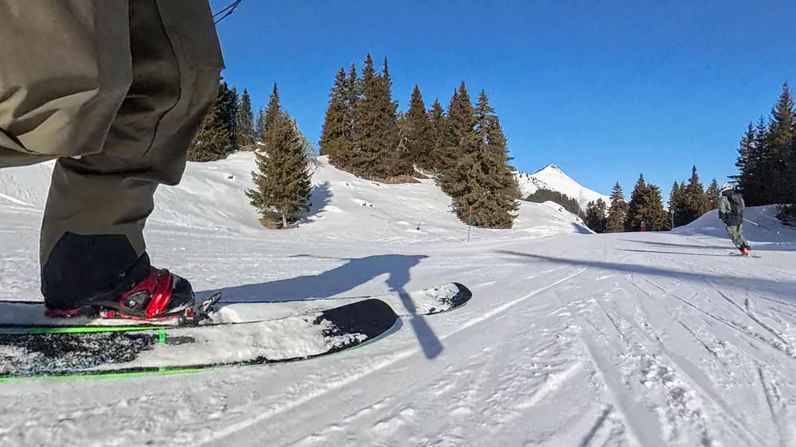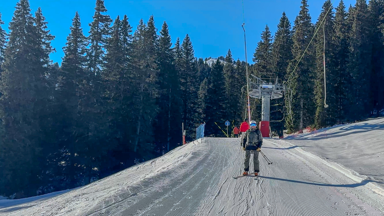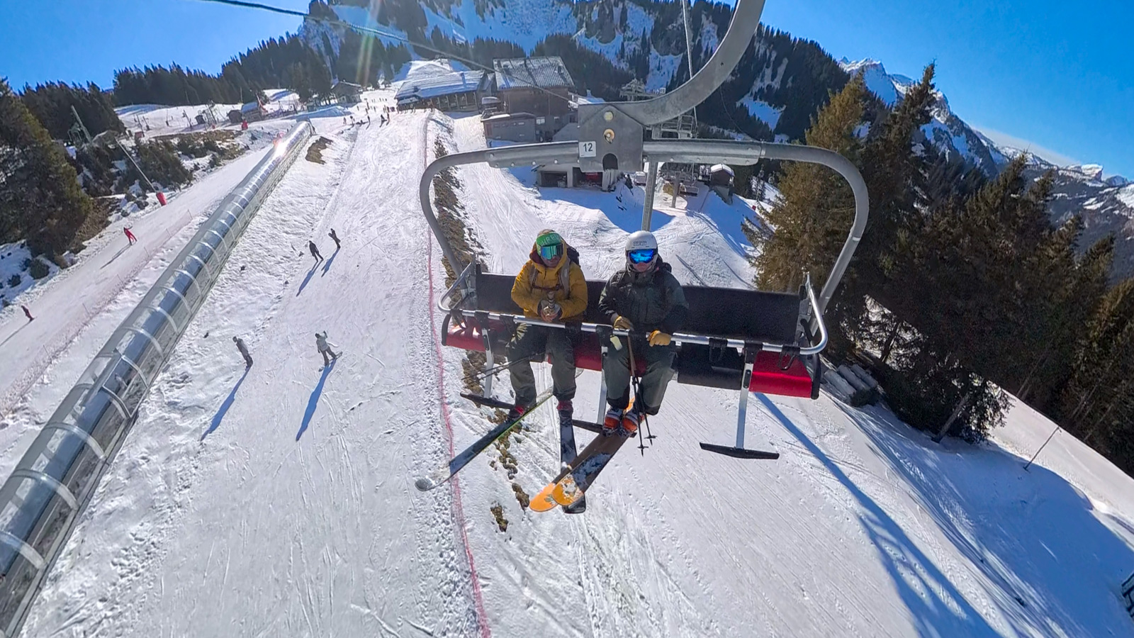 Lundi 7h30, Marc dépose le petit Djulian à la crèche avant de rejoindre l’équipe à Morgins. Cela fait un mois qu’il n’a pas neigé, mais le froid persistant a conservé une neige de très bonne qualité. Grâce au travail remarquable des équipes des remontées mécaniques, les pistes sont en parfait état, offrant un terrain idéal pour poursuivre nos tests de matériel.