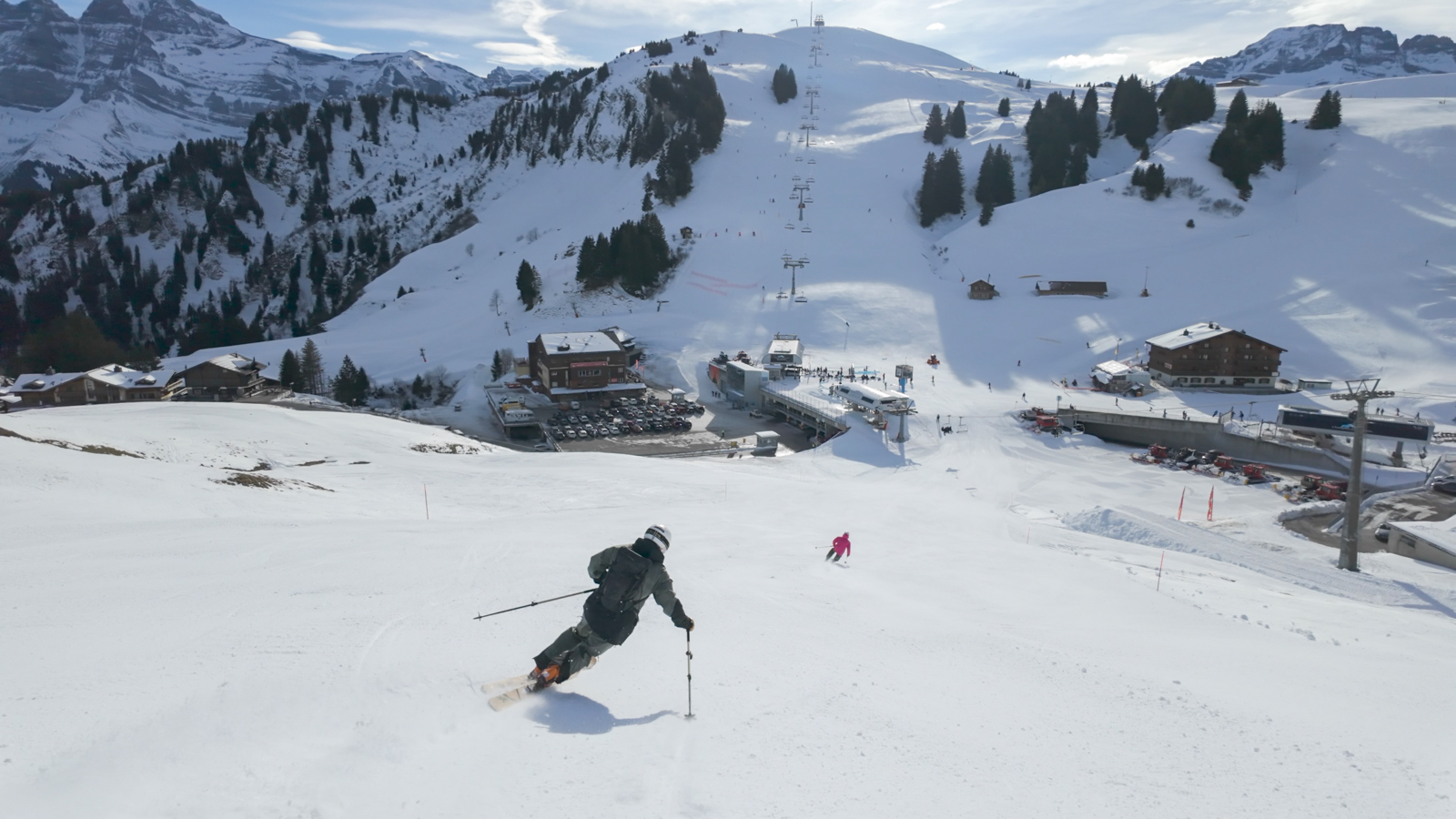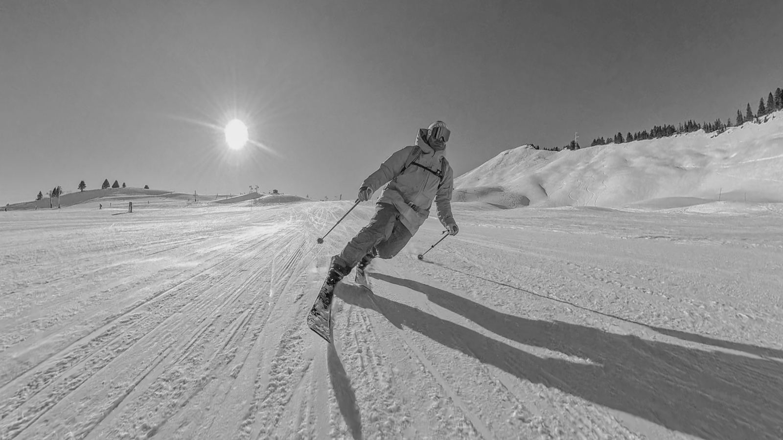 Pas de freeride cette fois : la montagne se dévoile autrement. Avec nos nouvelles caméras embarquées et des drones suiveurs prêts à capturer chaque mouvement, nous nous sommes lancés dans deux jours d’évasion sur pistes.