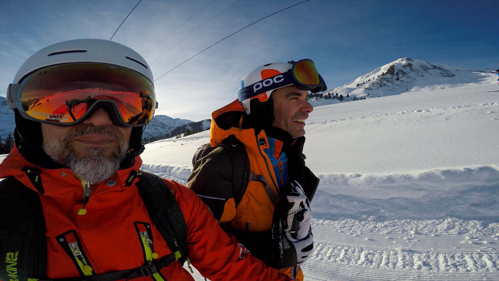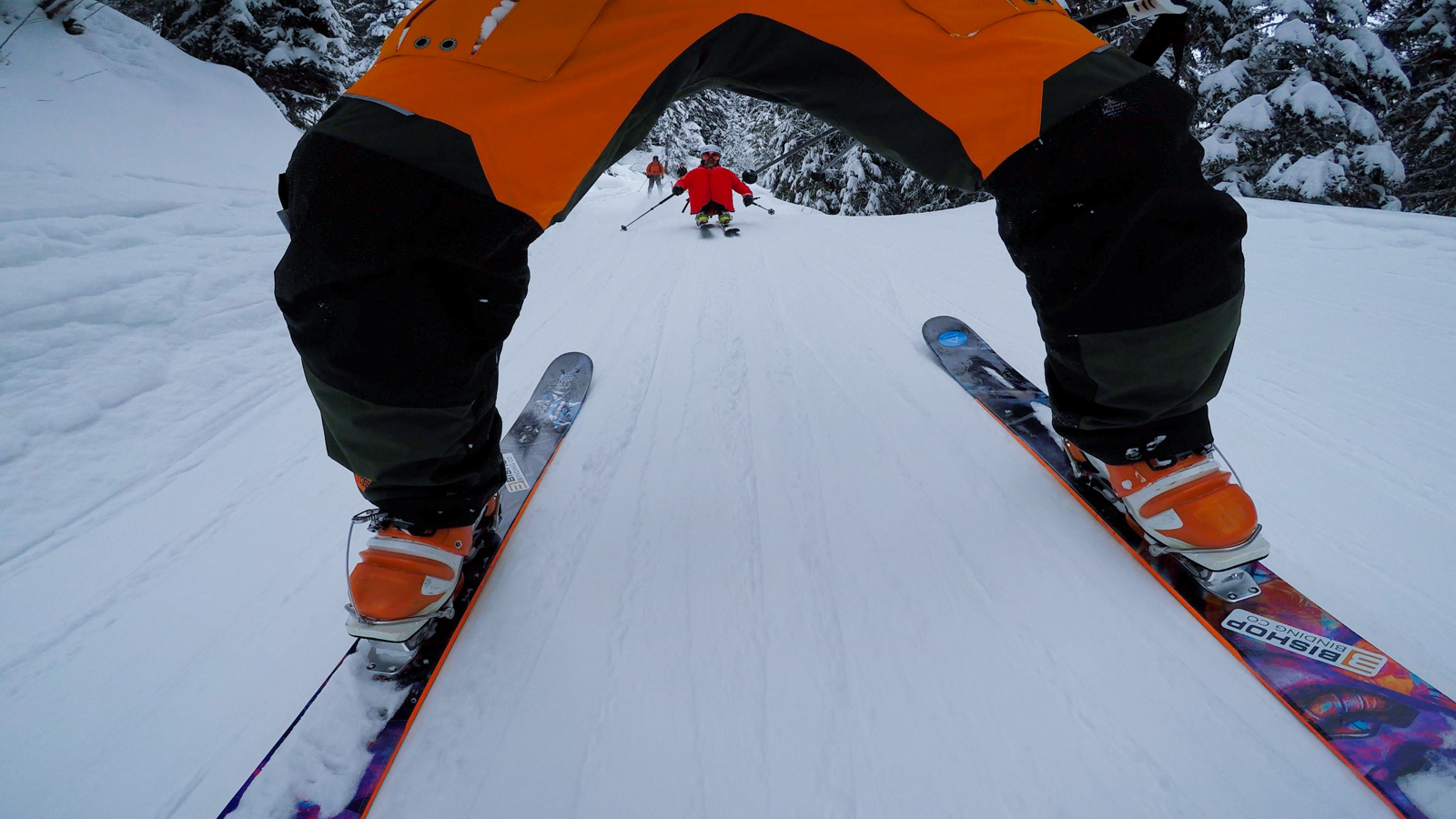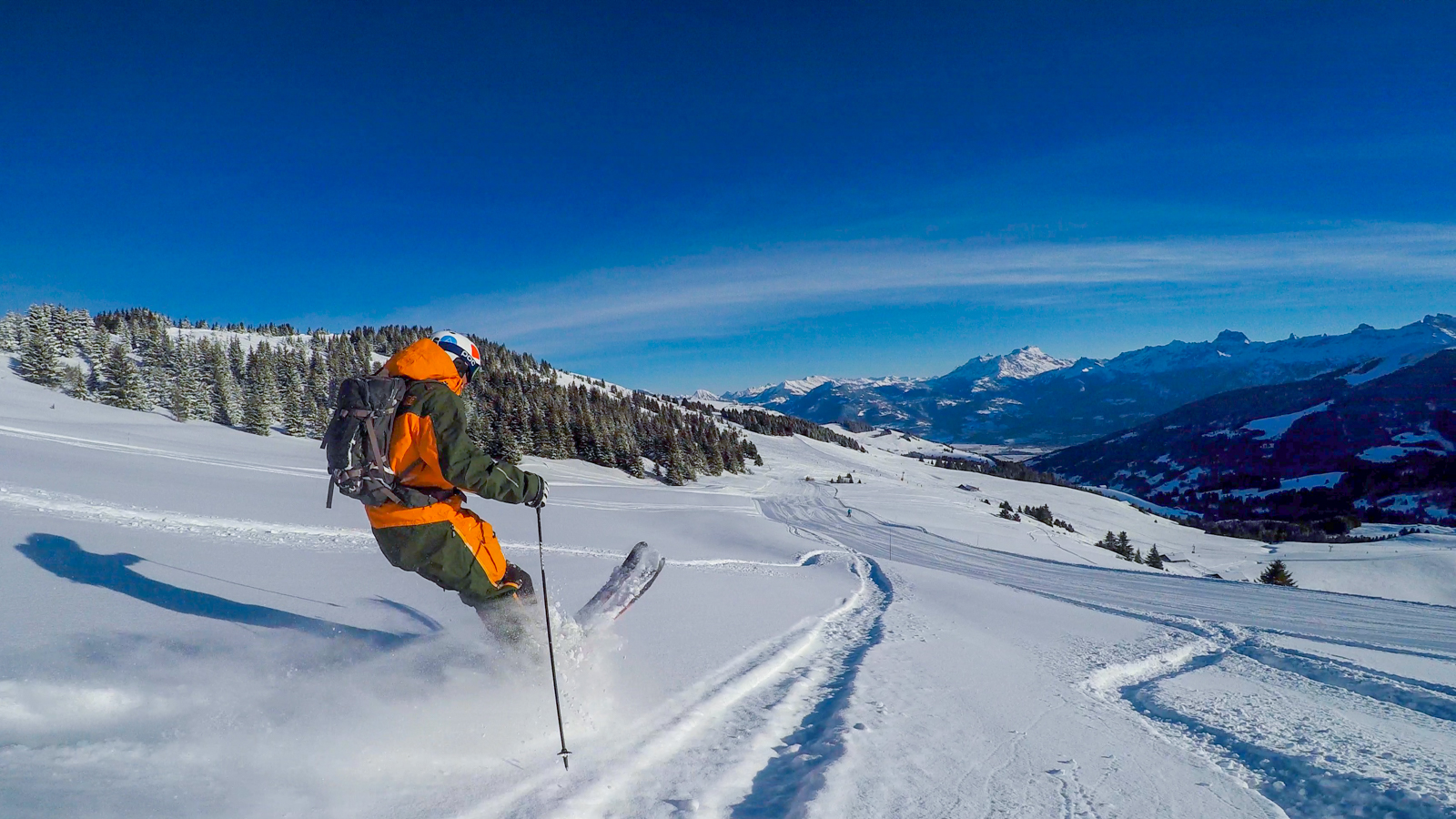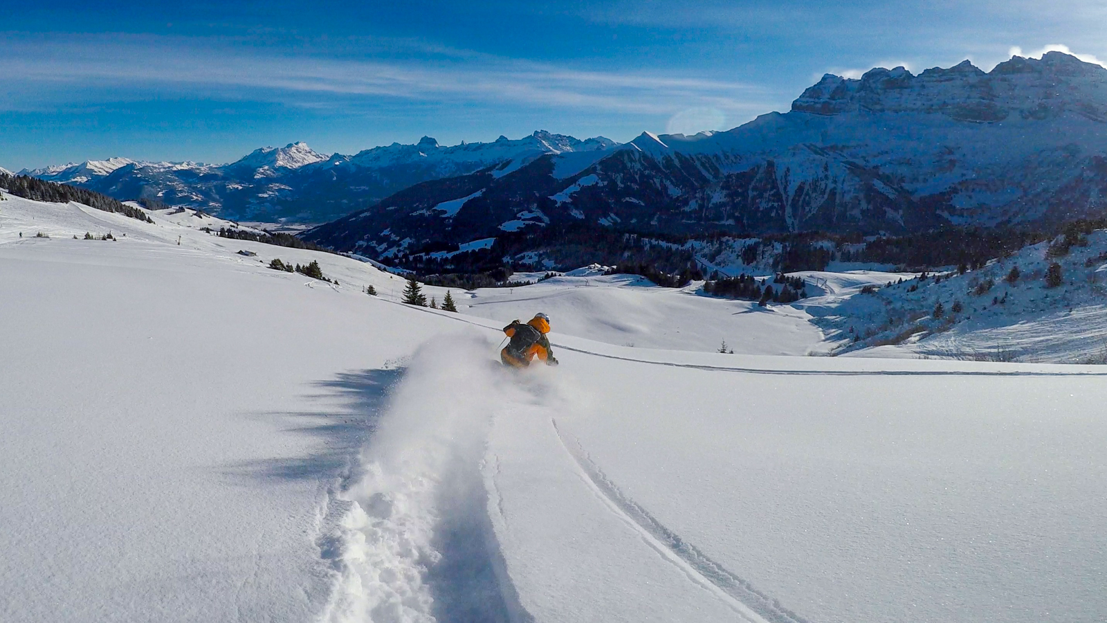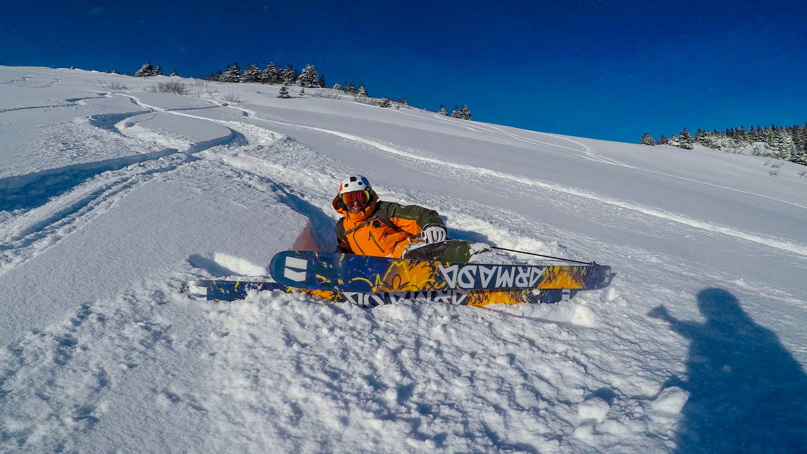 Une petite matinée sous un soleil radieux, dans une poudreuse plus qu’abondante. Le ciel se couvre alors gentiment, le vent se lève, le temps pour nous de rejoindre la station par un petit passage en forêt.