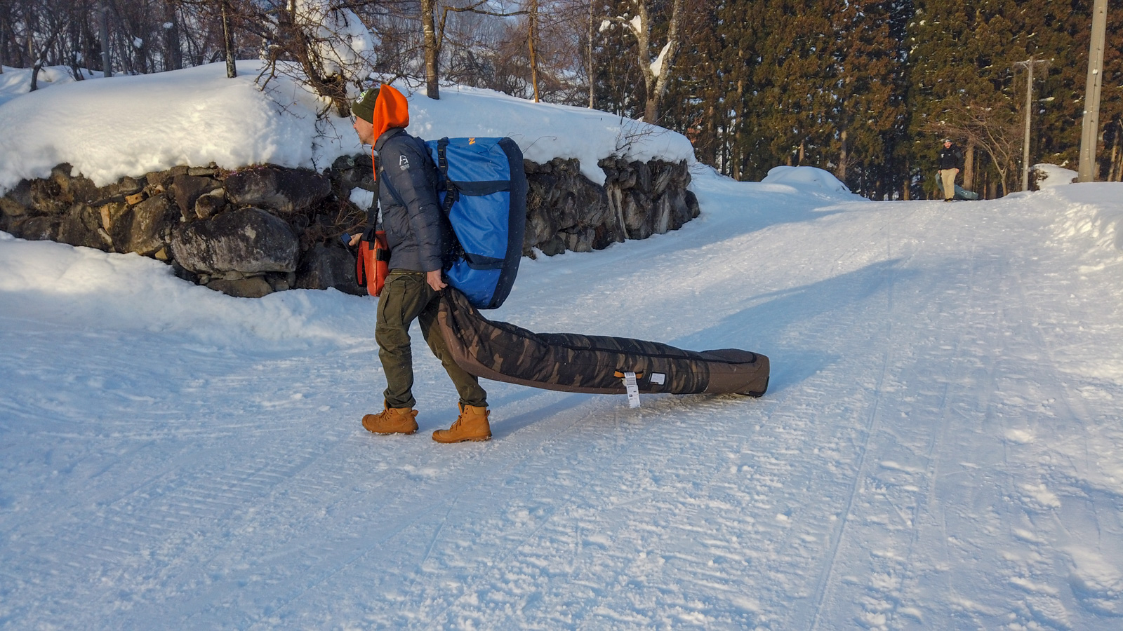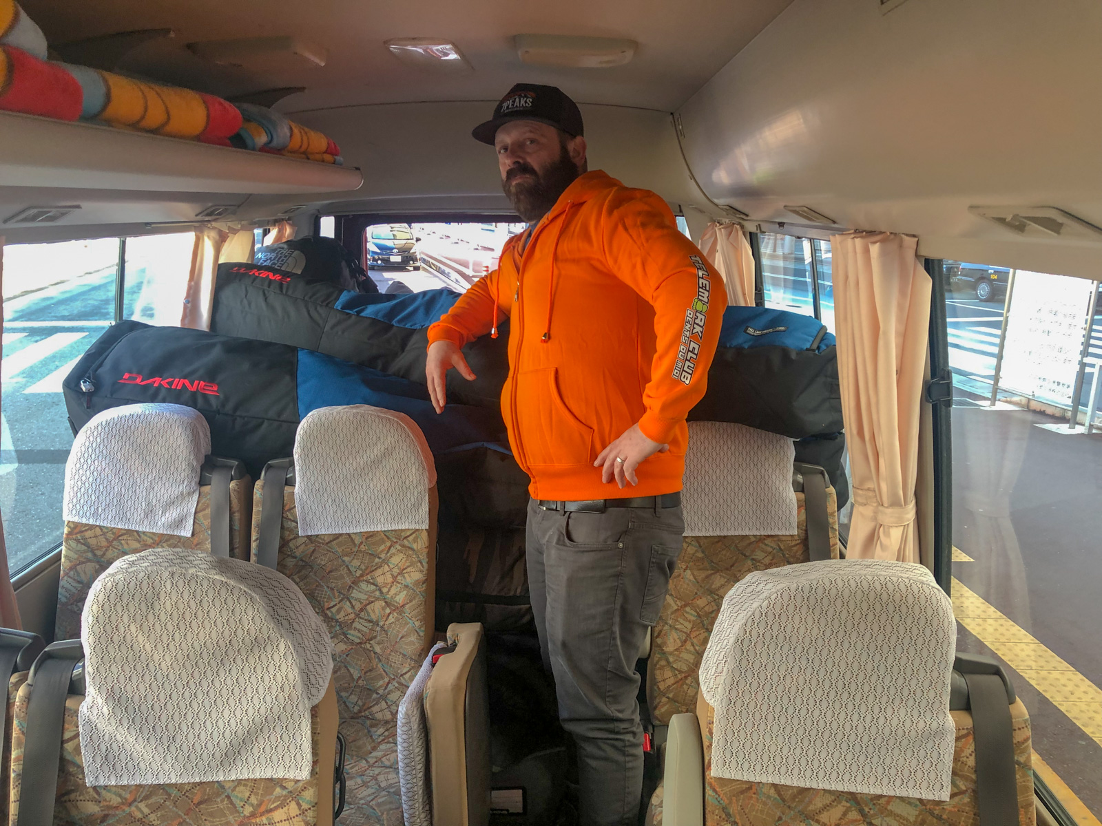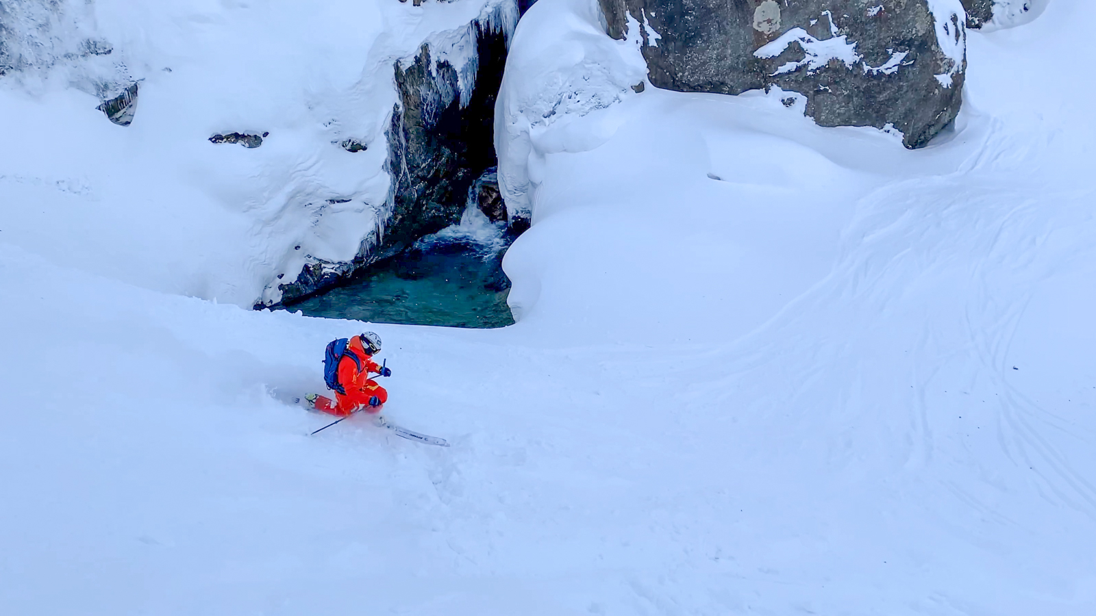 Cela fait 5 jours qu’il n’a pas neigé dans la vallée, il va falloir monter en peaux pour trouver un spot idéal, chose que nous faisons dès le premier jour. Une belle montée (pas évidente pour tout le monde, hein Marc ?!). Place maintenant à la descente! Grâce à Seb, rencontré au lodge et qui nous accompagne ce jour, nous descendons donc cette face nord pour nous retrouver nez-à-nez avec une cascade infranchissable. Il faut alors remonter pour la contourner, nous traversons ensuite rivières et routes avant de trouver un taxi. Une longue descente, très longue… La fatigue est présente, le jetlag aussi… La machine à souvenirs est en marche.