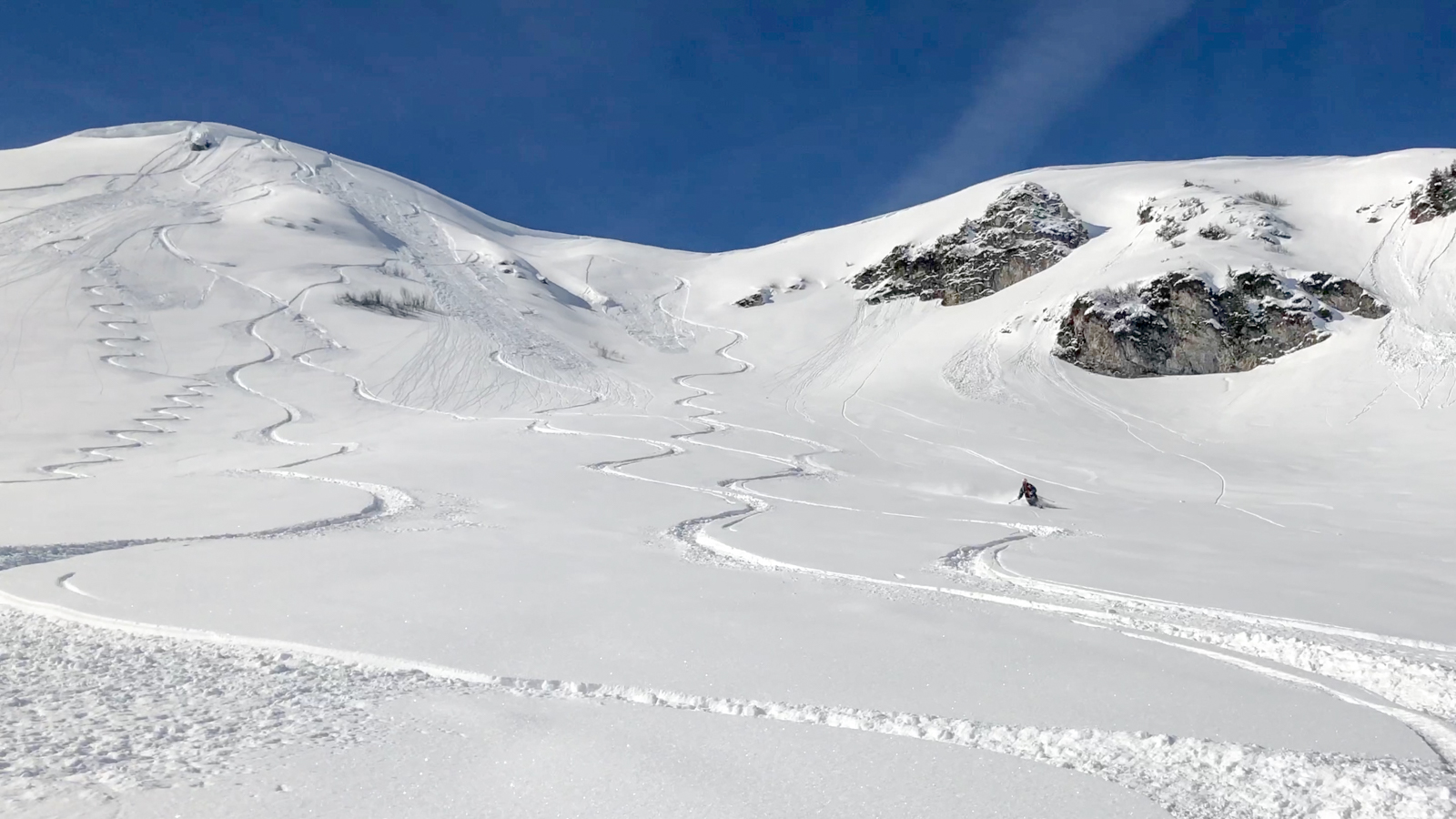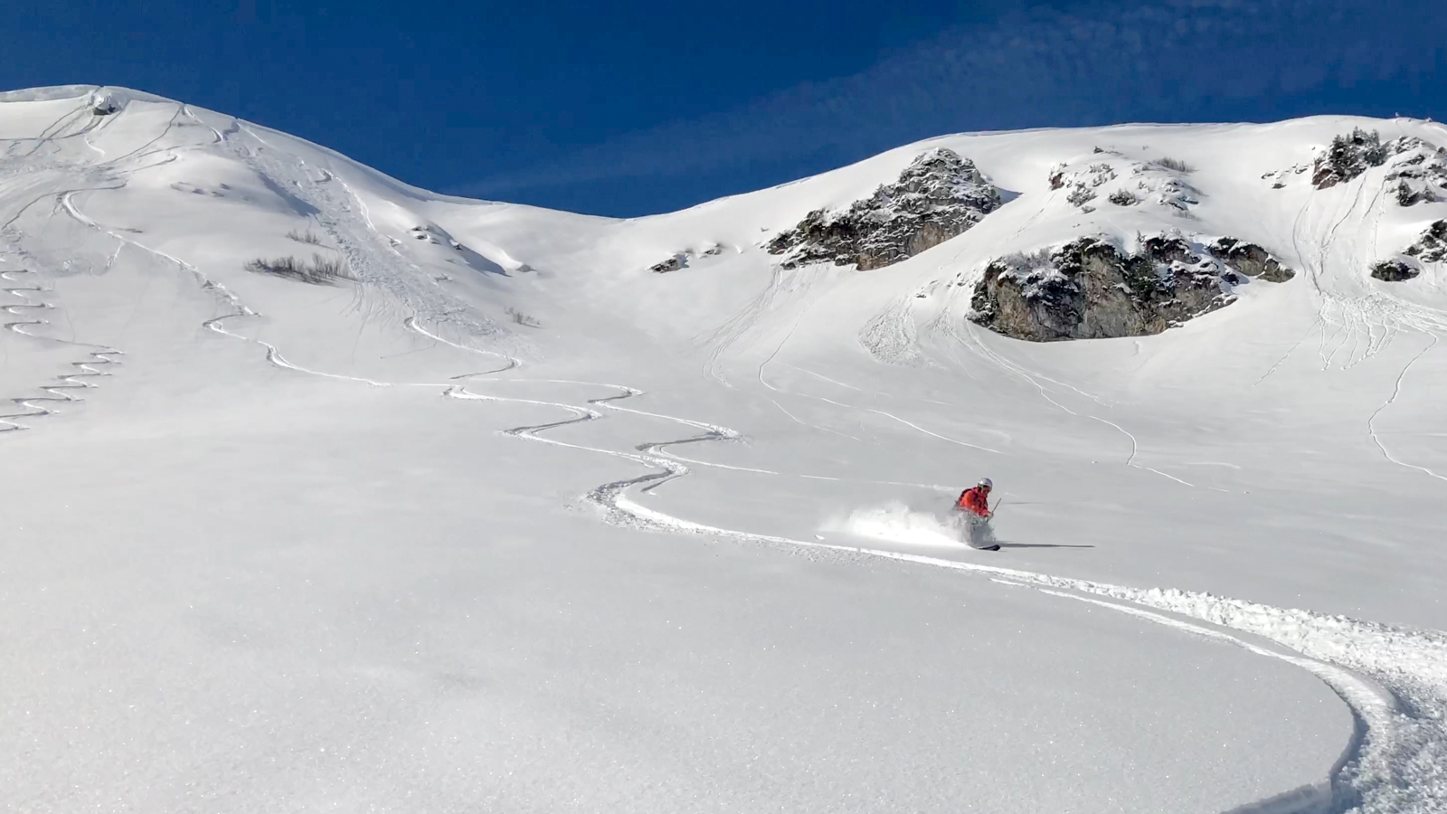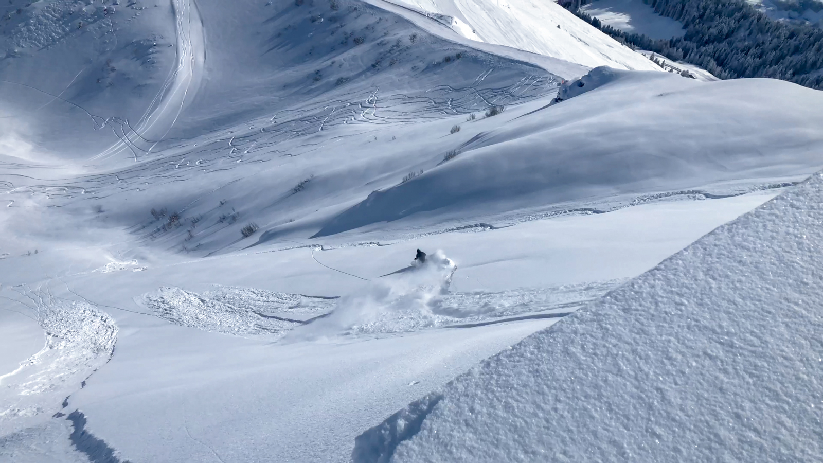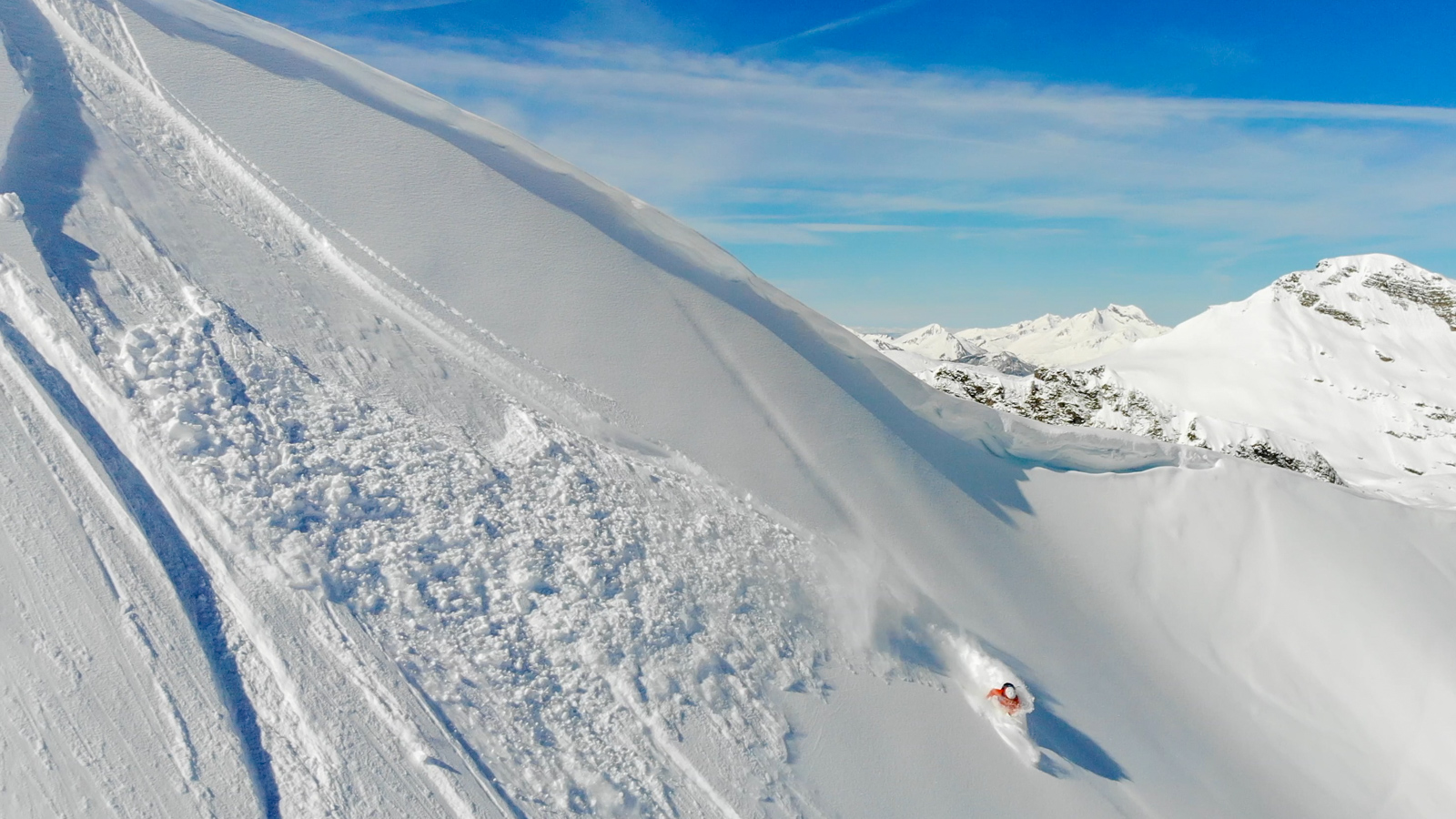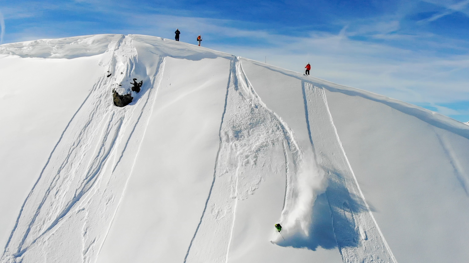 Devant nous, des crêtes vierges… Nous sommes seuls au sommet de chaque run. Magique! Malgré un départ précipité, nous n’avons pas oublié d’embarquer le drone dans le sac. Résultat des courses, des images incroyables, une journée de dingue, quelques belles gamelles, des sourires sur tous les visages et des souvenirs plein la tête!