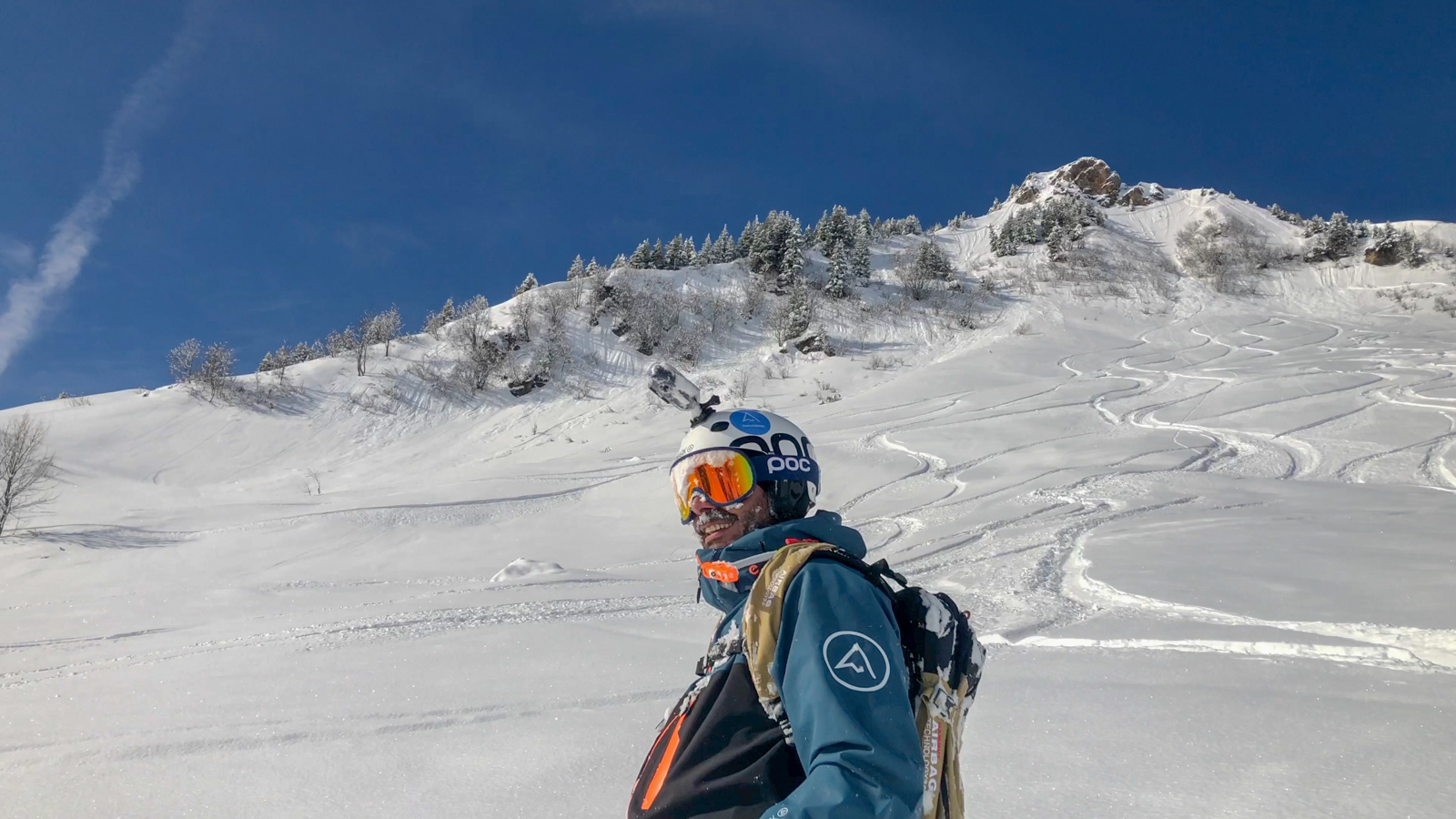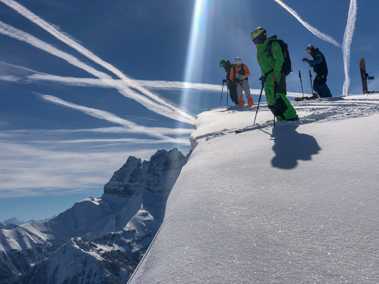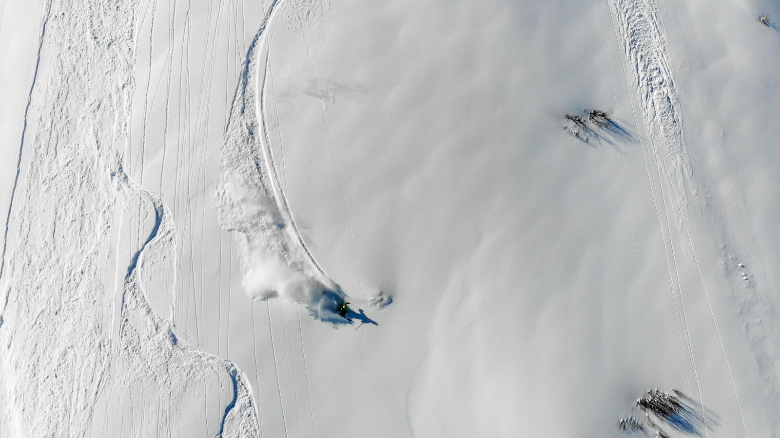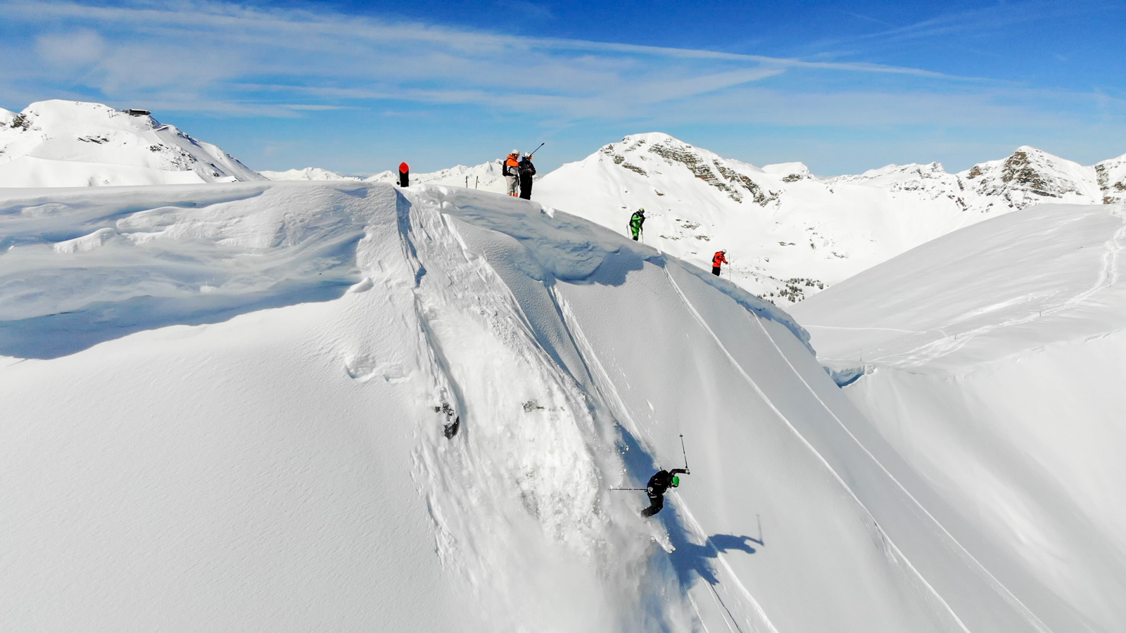 Devant nous, des crêtes vierges… Nous sommes seuls au sommet de chaque run. Magique! Malgré un départ précipité, nous n’avons pas oublié d’embarquer le drone dans le sac. Résultat des courses, des images incroyables, une journée de dingue, quelques belles gamelles, des sourires sur tous les visages et des souvenirs plein la tête!