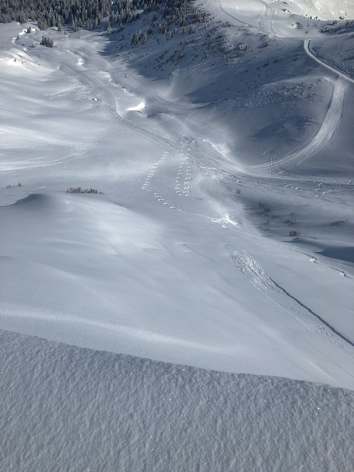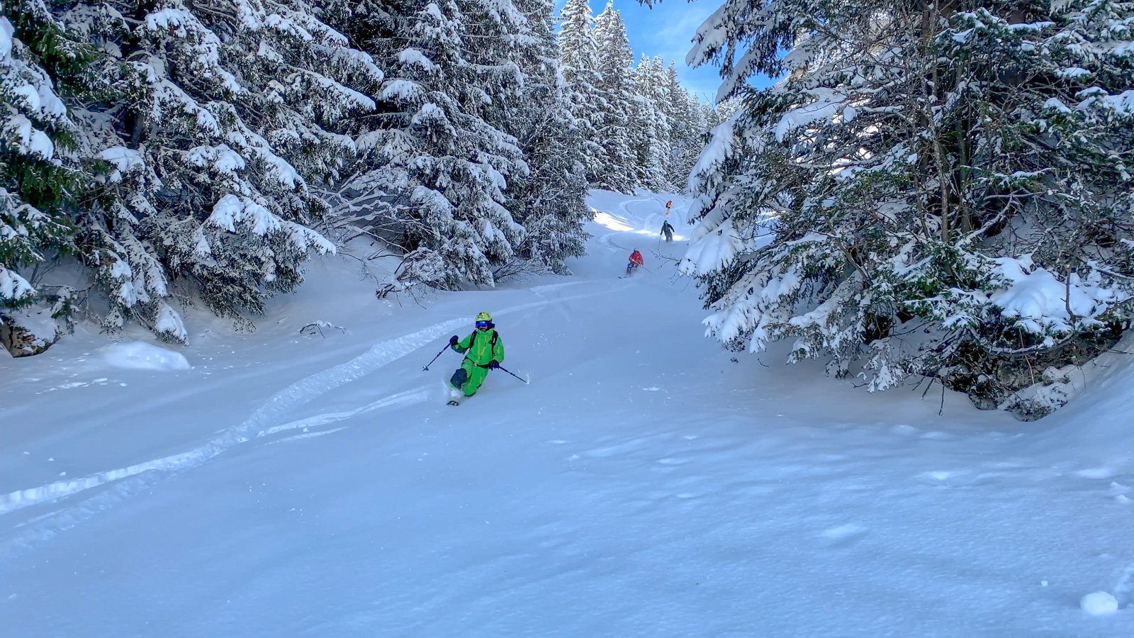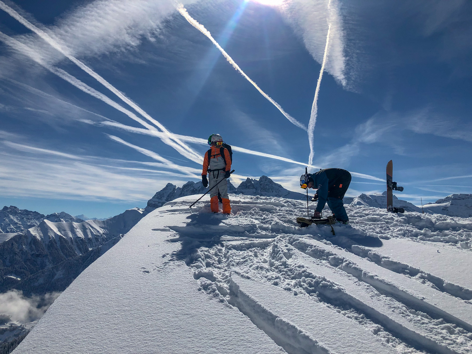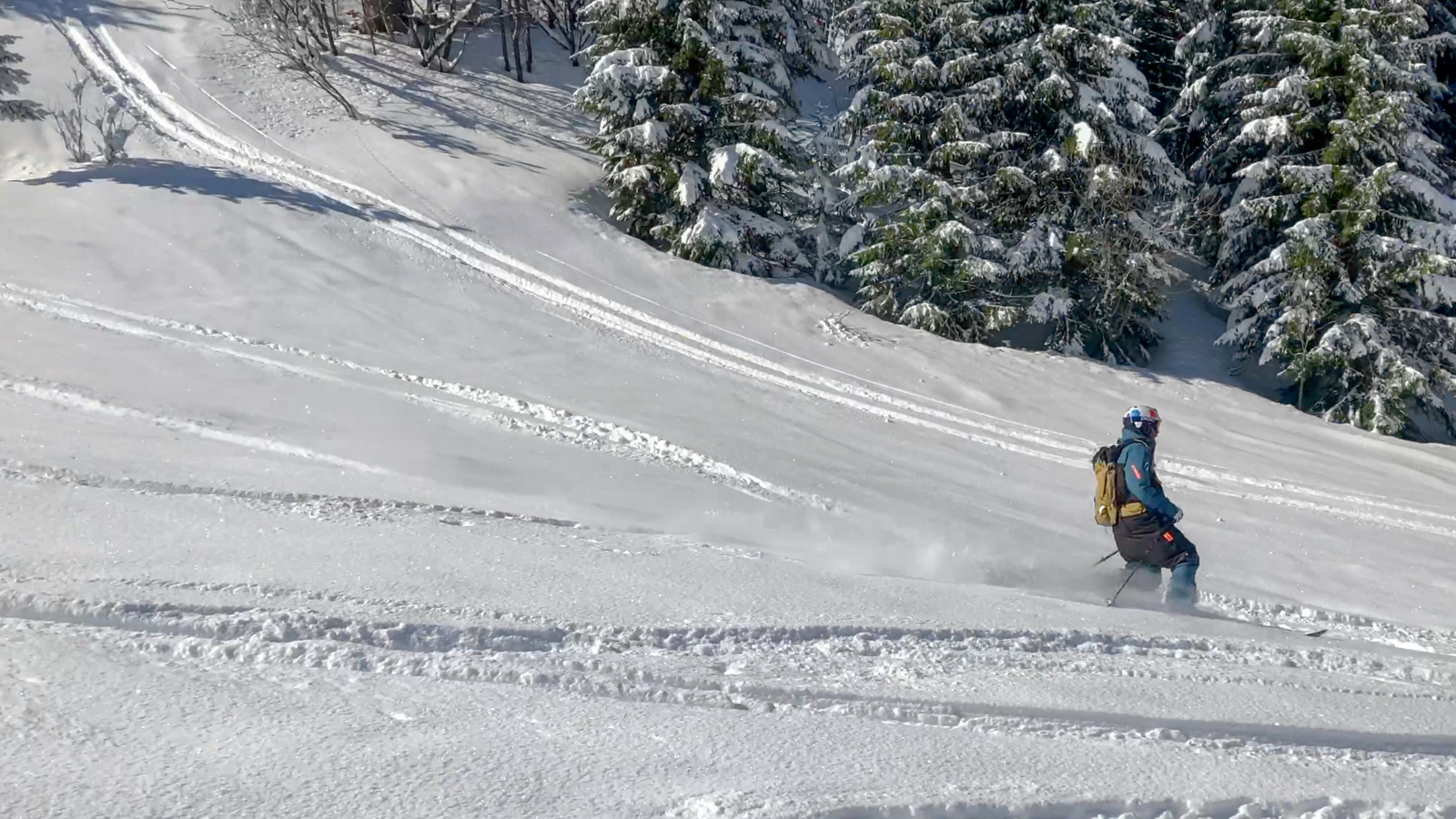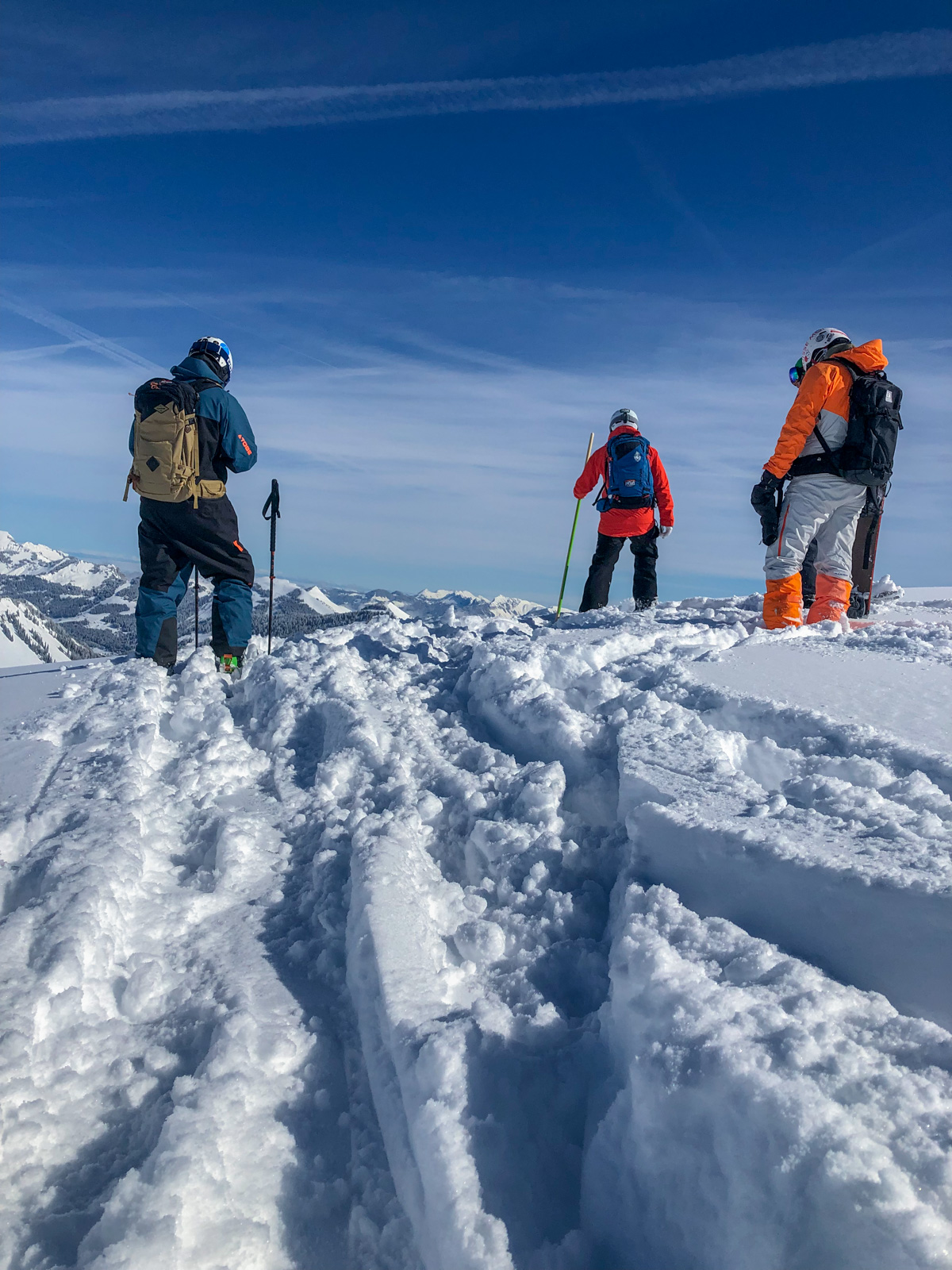 Devant nous, des crêtes vierges… Nous sommes seuls au sommet de chaque run. Magique! Malgré un départ précipité, nous n’avons pas oublié d’embarquer le drone dans le sac. Résultat des courses, des images incroyables, une journée de dingue, quelques belles gamelles, des sourires sur tous les visages et des souvenirs plein la tête!