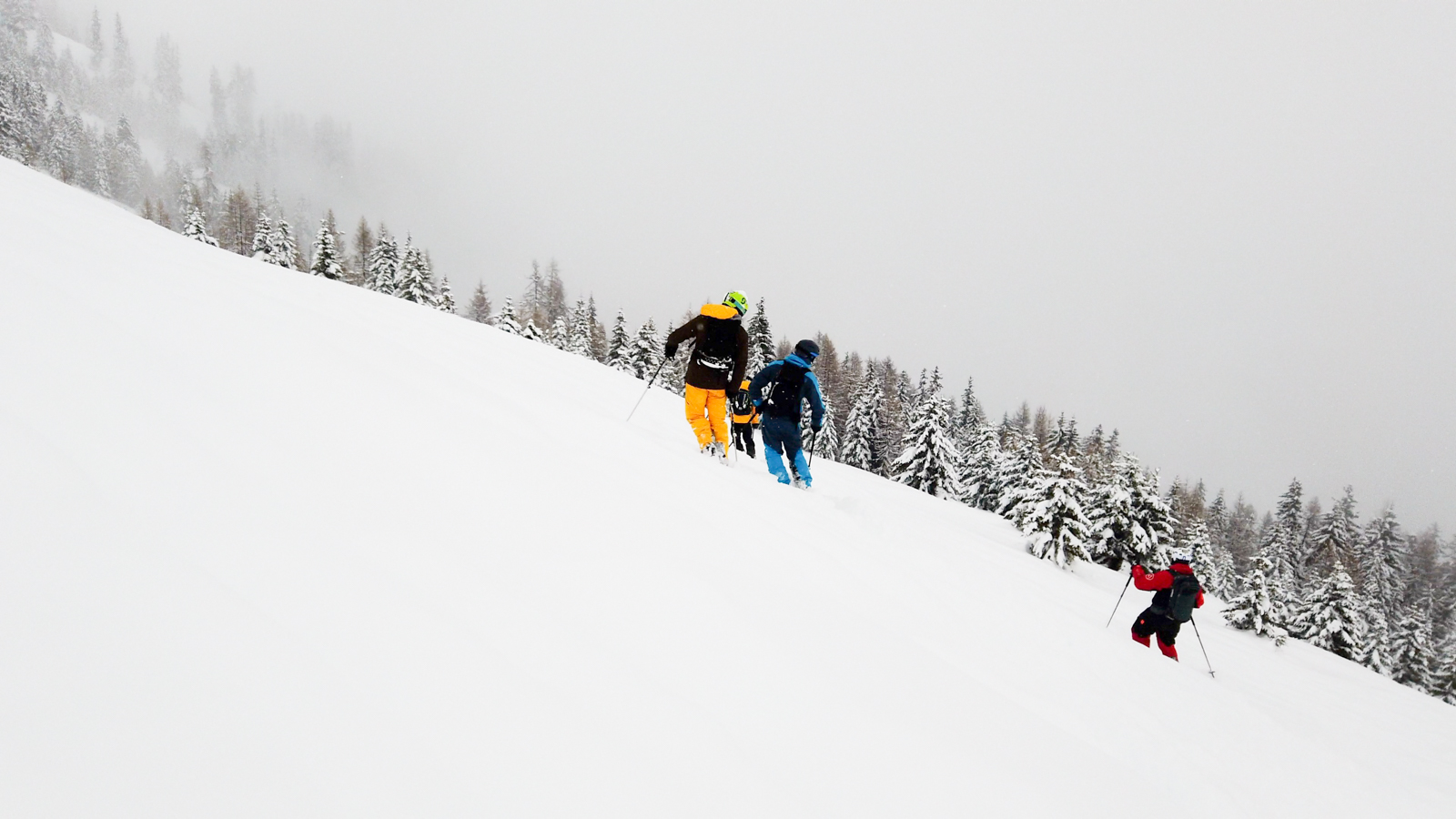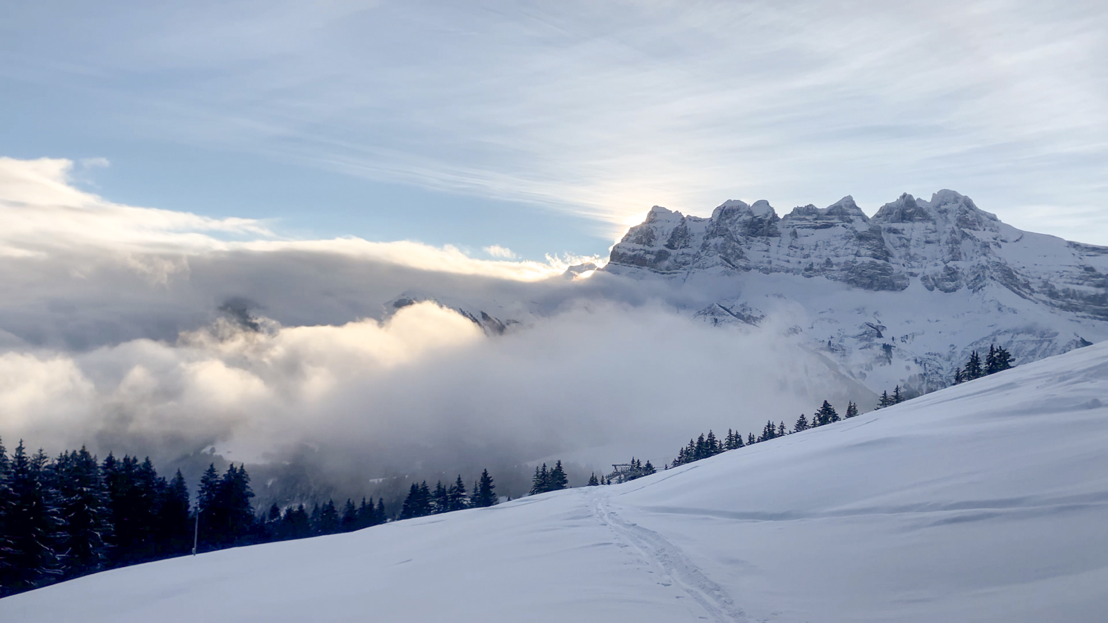 Sacrée mise en bouche la première semaine avec Marc et Romain, rejoint ensuite par Damien et Didier, pour un démarrage parfaitement local à Morgins. Une quantité de neige incroyable qui nous en a mis plein la vue et permis de vivre d’intenses moments dans la forêt de la Foilleuse, ou sur les sommets de Pierre Plate et de la Pointe de l’Au.